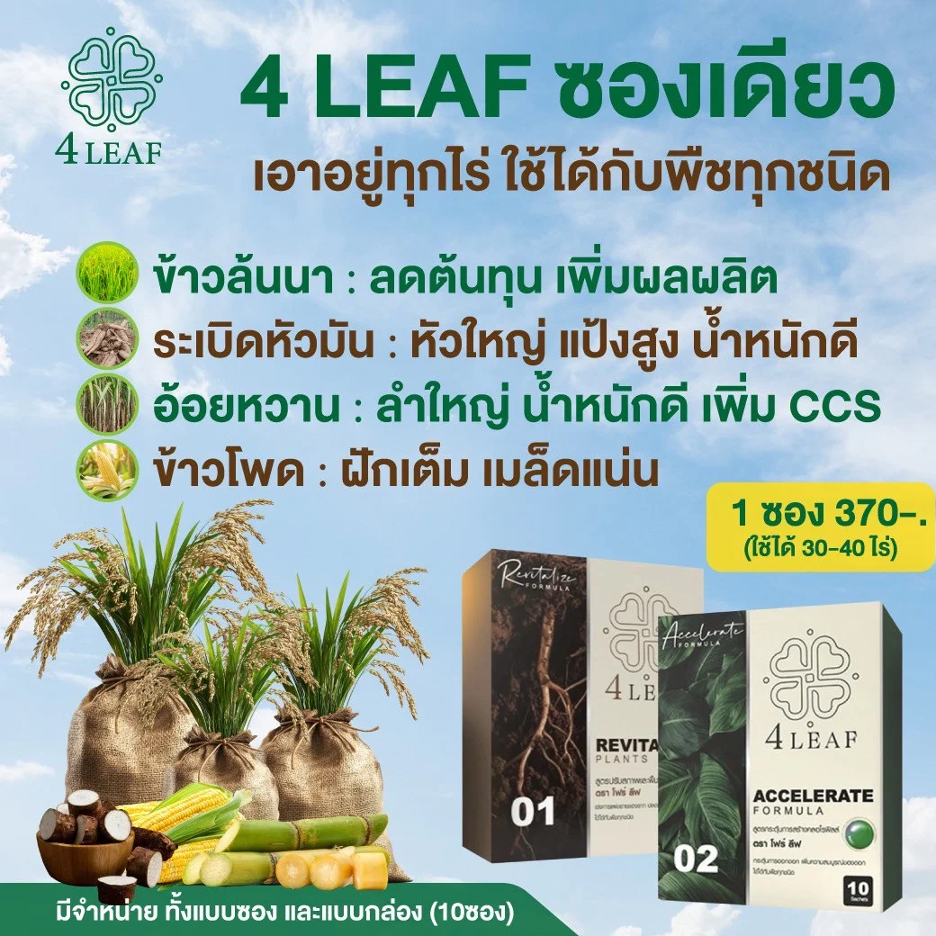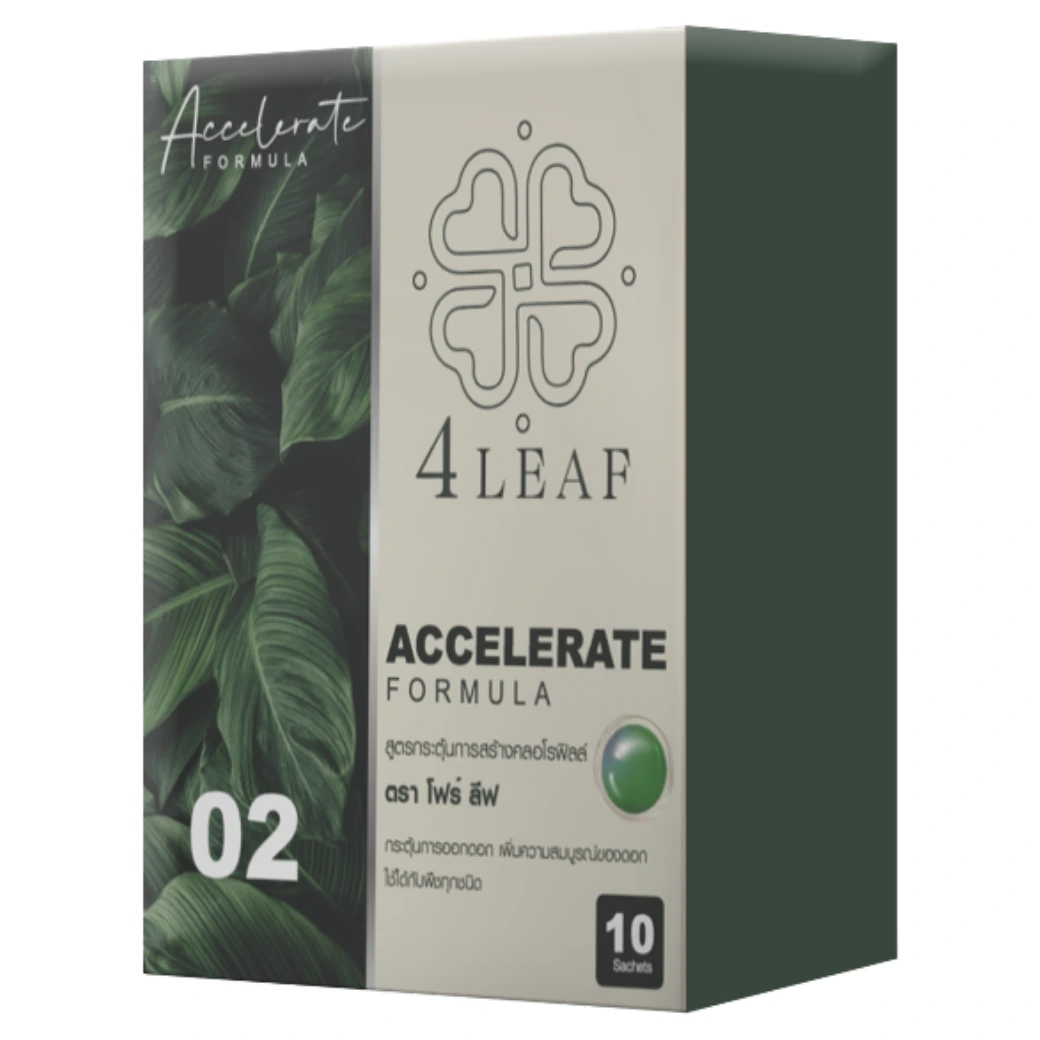 4LEAF โฟร์ลีฟ คือ ผลิตภัณฑ์อาหารเสริมพืชสูตรเร่งพิเศษ (Accelerate Formula) ที่พัฒนาขึ้นเพื่อเร่งการสร้างคลอโรฟิลล์ เพิ่มความสมบูรณ์ของต้น กระตุ้นการออกดอก และเพิ่มคุณภาพผลผลิตให้สูงสุด เหมาะสำหรับพืชทุกชนิด ใช้ง่าย เห็นผลเร็ว ช่วยให้เกษตรกรลดต้นทุนการดูแล และเพิ่มผลผลิตต่อไร่ได้อย่างแท้จริง